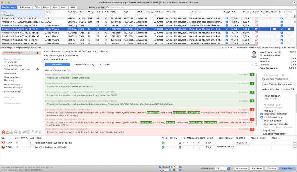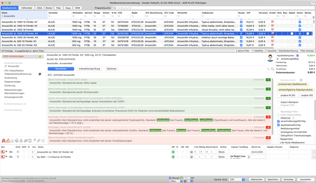 Mit tomedo.Dental haben Sie Zugriff auf eine vollständige Liste aller MMI-Medikamente. Die Informationen zu den einzelnen Medikamenten umfassen u. a. Zusammensetzung, Indikation, Dosierung, Darreichungsform, Hinweise des GBA und aus regionalen Arzneimittelvereinbarungen, Preisinformationen sowie alle weiteren notwendigen Informationen.
